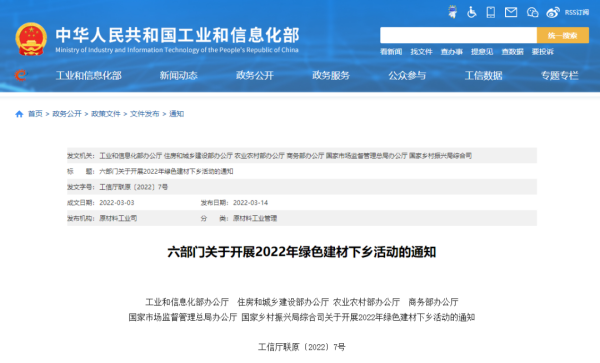 工信部等六部門(mén)開(kāi)展2022年綠色建材下鄉活動(dòng)