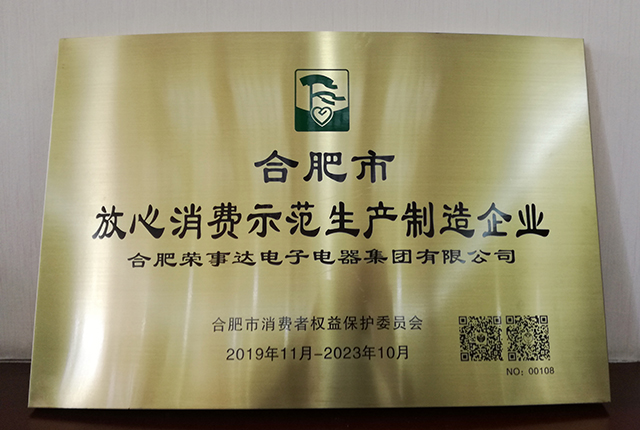喜訊:榮事達電子電器集團獲評“合肥市放心消費示范生產(chǎn)制造企業(yè)”! |