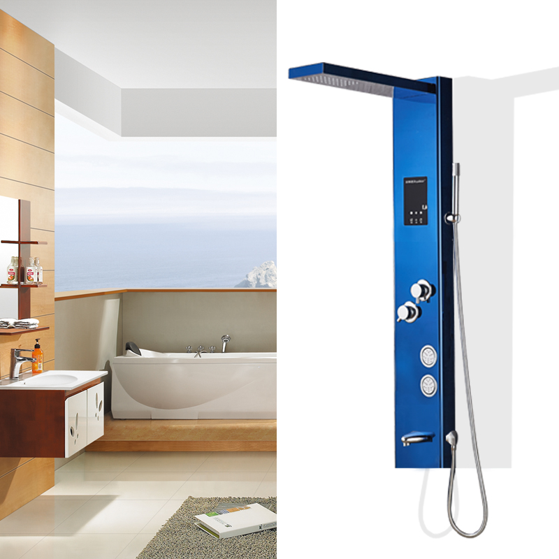 產(chǎn)品優(yōu)勢: 不銹鋼黃金比例精制 麥克風(fēng)SPA手持增壓花灑 全銅鏡面電鍍閥門(mén) LED電容觸摸屏 水溫在35°-55°之間 隨意調節 負離子凈化空氣 產(chǎn)品名稱(chēng) LED觸摸淋浴屏 產(chǎn)品型號 RSD-8527D 裝箱數量 1套 規格尺寸 主體:1200x220