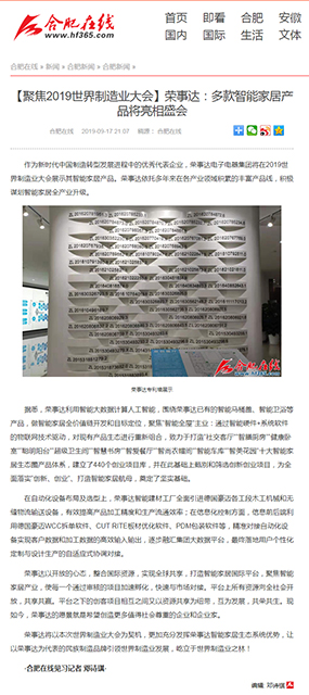 9月18日,合肥新聞聯(lián)播就2019世界制造業(yè)大會(huì )專(zhuān)題報道“榮事達將再掀智能家居熱潮”。