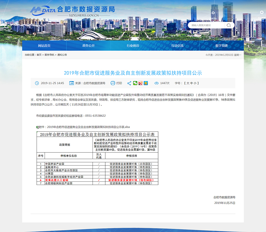 近日,《2019年合肥市促進(jìn)服務(wù)業(yè)及自主創(chuàng )新發(fā)展政策擬扶持項目》進(jìn)行公示,該文顯示:合肥榮事達電子電器集團有限公司運營(yíng)管理的榮事達第六工業(yè)園區成功納入合肥市數字經(jīng)濟產(chǎn)業(yè)特色園區名錄庫,并進(jìn)行相關(guān)政策扶持。