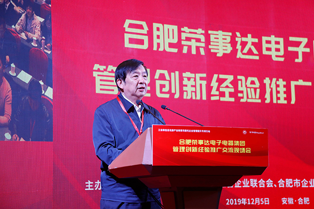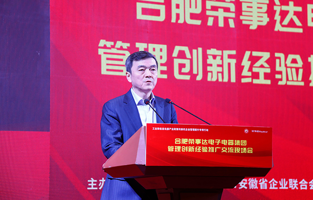 隨后,合肥市政府副秘書(shū)長(cháng)劉永龍致辭,他說(shuō):合肥堅持工業(yè)立市、制造強市戰略,正在奮力打造具有國際影響力的創(chuàng )新之都,以榮事達電子電器集團為代表的傳統產(chǎn)業(yè)持續領(lǐng)跑經(jīng)濟發(fā)展。管理創(chuàng )新是實(shí)現經(jīng)濟高質(zhì)量發(fā)展的保證,榮事達作為我市優(yōu)秀代表,始終堅持管理創(chuàng )新與機制創(chuàng )新,取得了豐碩成果,此次中國企業(yè)聯(lián)合會(huì )在合肥召開(kāi)榮事達管理創(chuàng )新經(jīng)驗推廣交流現場(chǎng)會(huì ),既是對我們的高度肯定,也為大家提供了學(xué)習機會(huì )。長(cháng)三角一體化讓合肥發(fā)展站在了新起點(diǎn),真誠地歡迎大家在這片創(chuàng )新創(chuàng )業(yè)的熱土上大有作為,為合肥發(fā)展注入新動(dòng)能。