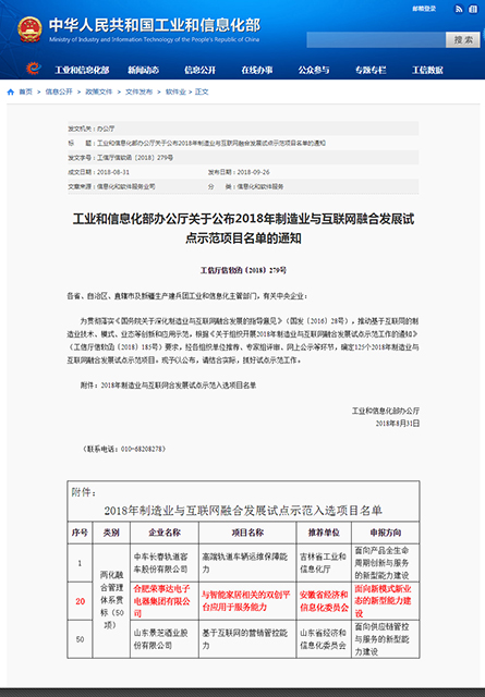 2018年9月,《工業(yè)和信息化部辦公廳關(guān)于公布2018年制造業(yè)與互聯(lián)網(wǎng)融合發(fā)展試點(diǎn)示范項目名單的通知》對外發(fā)布。合肥榮事達電子電器集團有限公司榜上有名,憑借面向新模式新業(yè)態(tài)的新型能力建設成功入選2018年制造業(yè)與互聯(lián)網(wǎng)融合發(fā)展試點(diǎn)示范項目。