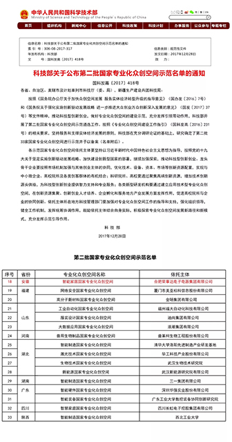 2017年12月,國家科技部發(fā)布《關(guān)于公布第二批國家專(zhuān)業(yè)化眾創(chuàng )空間示范名單的通知》,在充分調研論證的基礎上,研究確定了第二批33家國家專(zhuān)業(yè)化眾創(chuàng )空間進(jìn)行示范并予以備案,依托合肥榮事達電子電器集團有限公司建設的智能家居國家專(zhuān)業(yè)化眾創(chuàng )空間成功入選示范名單。