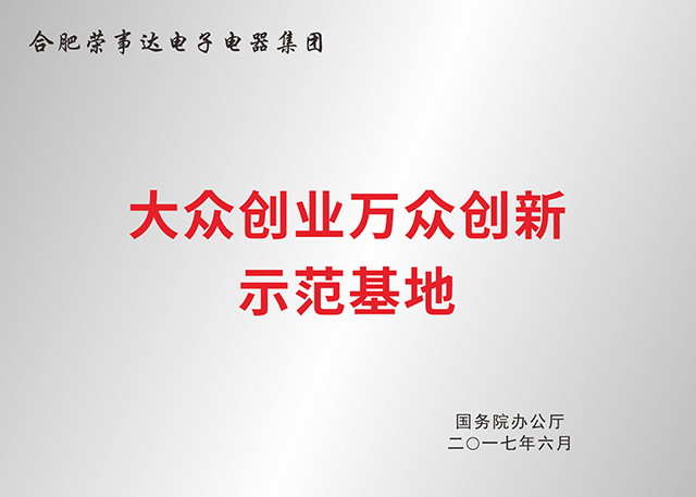 2017年6月,合肥榮事達電子電器集團有限公司成功躋身國務(wù)院頒發(fā)的“大眾創(chuàng )業(yè)萬(wàn)眾創(chuàng )新示范基地”名單。