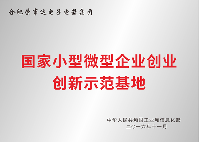 2016年11月,合肥榮事達電子電器集團有限公司入選工信部“國家小型微型企業(yè)創(chuàng )業(yè)創(chuàng )新示范基地”。