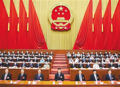 習近平、李克強、汪洋、王滬寧、趙樂(lè )際、韓正、王岐山和大會(huì )主席團成員在主席臺就座。