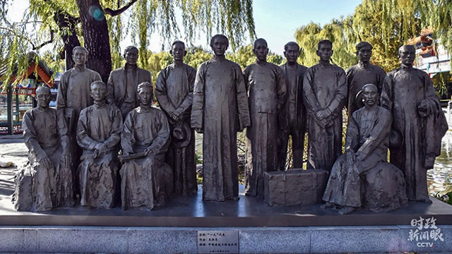 △中央黨校校園內名為“一大代表”的主題雕塑
