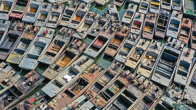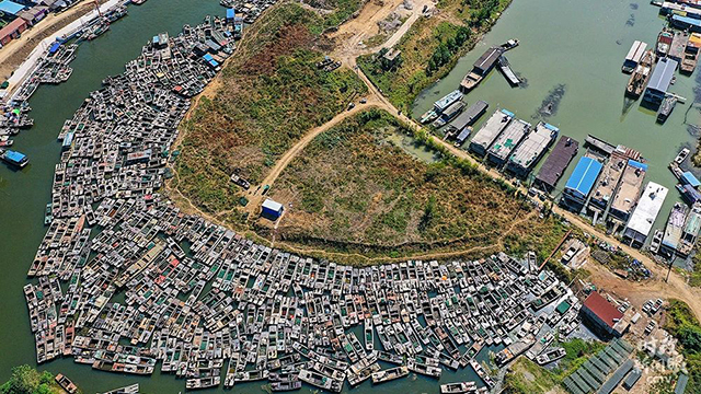 △國家實(shí)施長(cháng)江流域禁捕退捕政策后,江蘇宿遷泗洪縣啟動(dòng)洪澤湖水域禁捕退捕和住家船整治工作。這是聚集在漁港等待拆解的漁船。