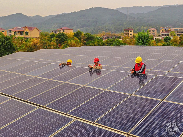 △江西吉安黃崗村,供電公司工人正在檢修“光伏+取暖”設備,保障村民溫暖過(guò)冬。