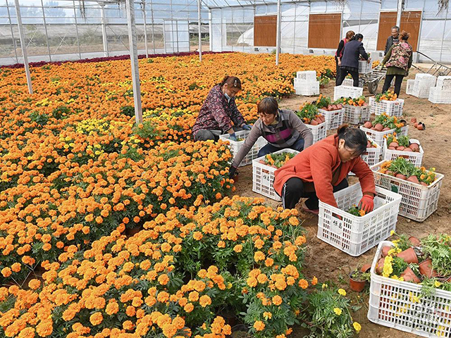 △山東棗莊市山亭區因地制宜發(fā)展花卉培育,帶動(dòng)貧困村民多渠道增收。