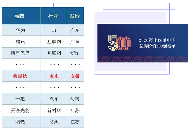 12月5日,第十四屆中國品牌價(jià)值500強榜單在鄭州揭曉。500個(gè)上榜中國品牌的總價(jià)值為261572.46億元,榮事達品牌以品牌價(jià)值113.51億元,榮登中國品牌價(jià)值500強榜單。