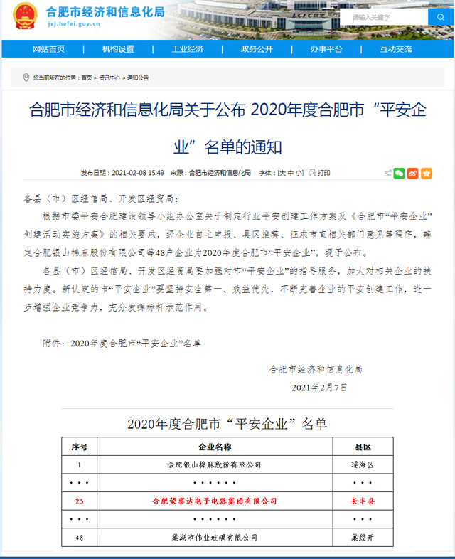 自去年復工復產(chǎn)以來(lái),榮事達集團積極部署疫情防控體系,全力配合各級政府開(kāi)展各項防御工作,防控工作和生產(chǎn)經(jīng)營(yíng)工作井然有序。系列舉措帶來(lái)卓爾有效的成果,日前,榮事達集團成功獲評2020年度合肥市“平安企業(yè)”。