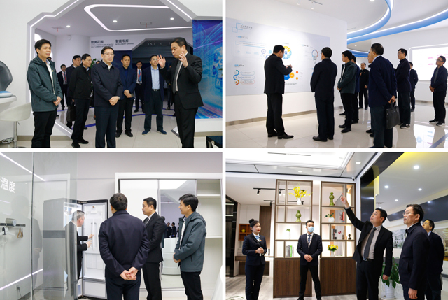 在集團董事長(cháng)潘保春的陪同下,劉惠書(shū)記一行先后深入榮事達智能家居全價(jià)值鏈雙創(chuàng )中心展廳以及榮事達黨建活動(dòng)中心。在調研過(guò)程中,潘保春董事長(cháng)向劉惠書(shū)記匯報了榮事達十三五期間在發(fā)展戰略、創(chuàng )新機制建設以及黨建等工作上取得的成果。潘保春董事長(cháng)表示,在“黨建引領(lǐng)雙創(chuàng )、雙創(chuàng )驅動(dòng)發(fā)展”行動(dòng)綱領(lǐng)的指導下,榮事達最終形成以黨建引領(lǐng)為核心的文化體系、以機制創(chuàng )新驅動(dòng)為核心的創(chuàng )新體系、以數據驅動(dòng)為核心的產(chǎn)業(yè)體系,立足“雙創(chuàng )”,在智能家居方向取得了切實(shí)有效的成果,并獲得了15項國家級榮譽(yù)。
