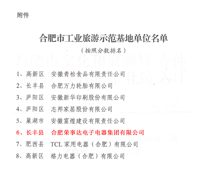 榮事達集團入選首批合肥市工業(yè)旅游示范基地!