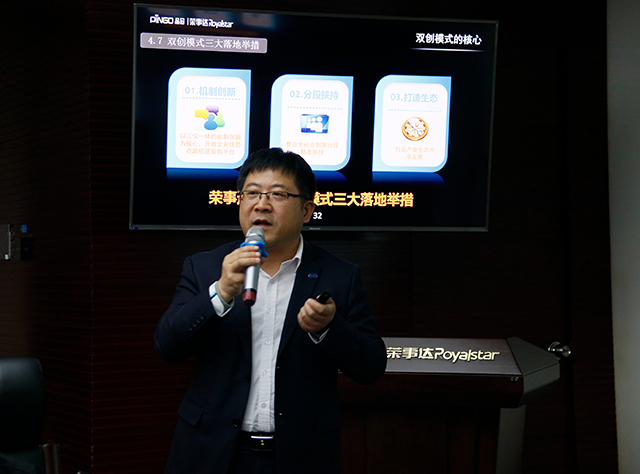集團助理總裁兼雙創(chuàng )運營(yíng)中心總經(jīng)理潘啟文介紹榮事達雙創(chuàng )模式