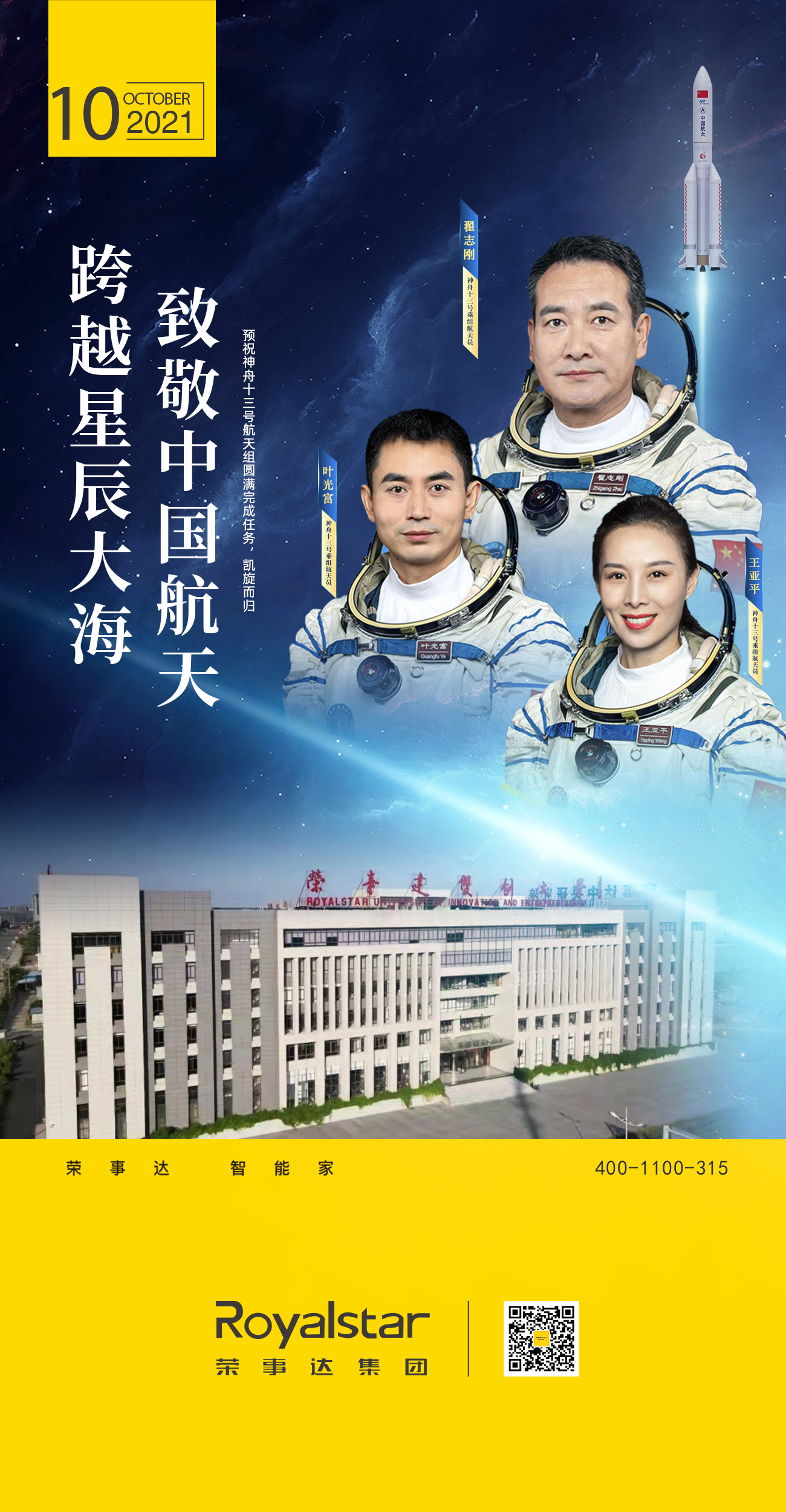 今天,神舟十三號載著(zhù)中國夢(mèng)出征太空,這是中國綜合實(shí)力的顯現,也是中國航天人不畏艱難的使命與擔當。在此,榮事達集團向全體航天人致敬,祝愿神舟十三號圓滿(mǎn)完成任務(wù),凱旋而歸!