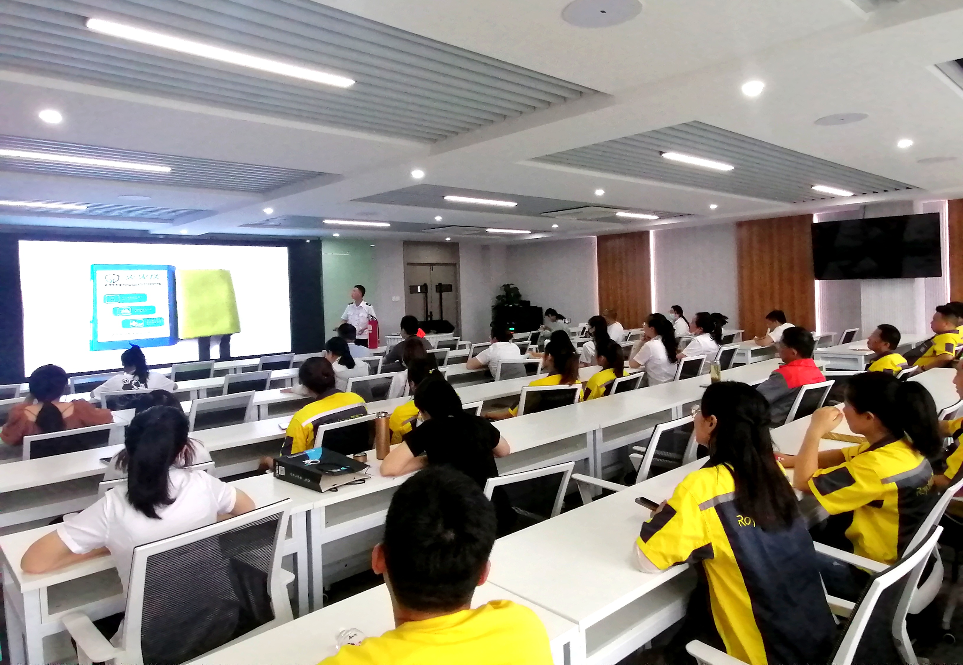 培訓課上教官為大家做消防安全知識講座