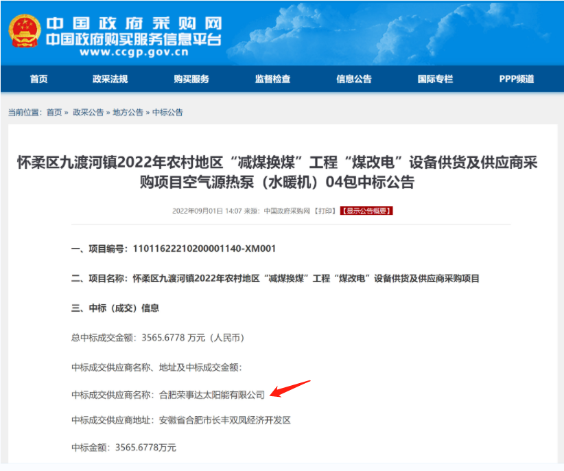 近日,榮事達旗下項目單位合肥榮事達太陽(yáng)能有限公司,研發(fā)生產(chǎn)的超低溫變頻增焓冷暖分體機,憑借過(guò)硬的技術(shù)和產(chǎn)品實(shí)力成功中標懷柔區九渡河鎮2022年農村地區“減煤換煤”工程“煤改電”設備供貨及供應商采購項目,再次印證了人們對榮事達品牌實(shí)力的認可。