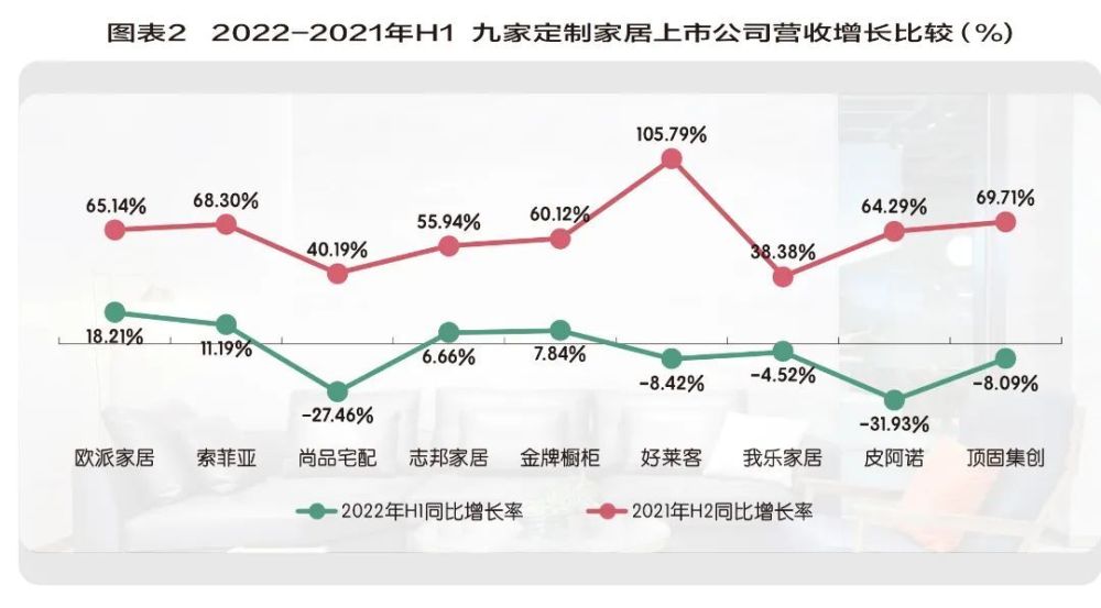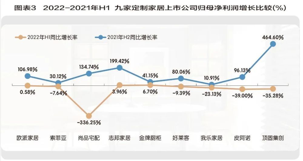 業(yè)績(jì)。再看表2、3九家定制家居上市公司今年上半年業(yè)績(jì)。無(wú)論從營(yíng)收還是凈利潤的同比增長(cháng)率角度,沒(méi)有一家出現高于去年同期的情況。營(yíng)收同比增長(cháng)率方面,5家負增長(cháng),而凈利潤同比增長(cháng)方面,6家負增長(cháng)。