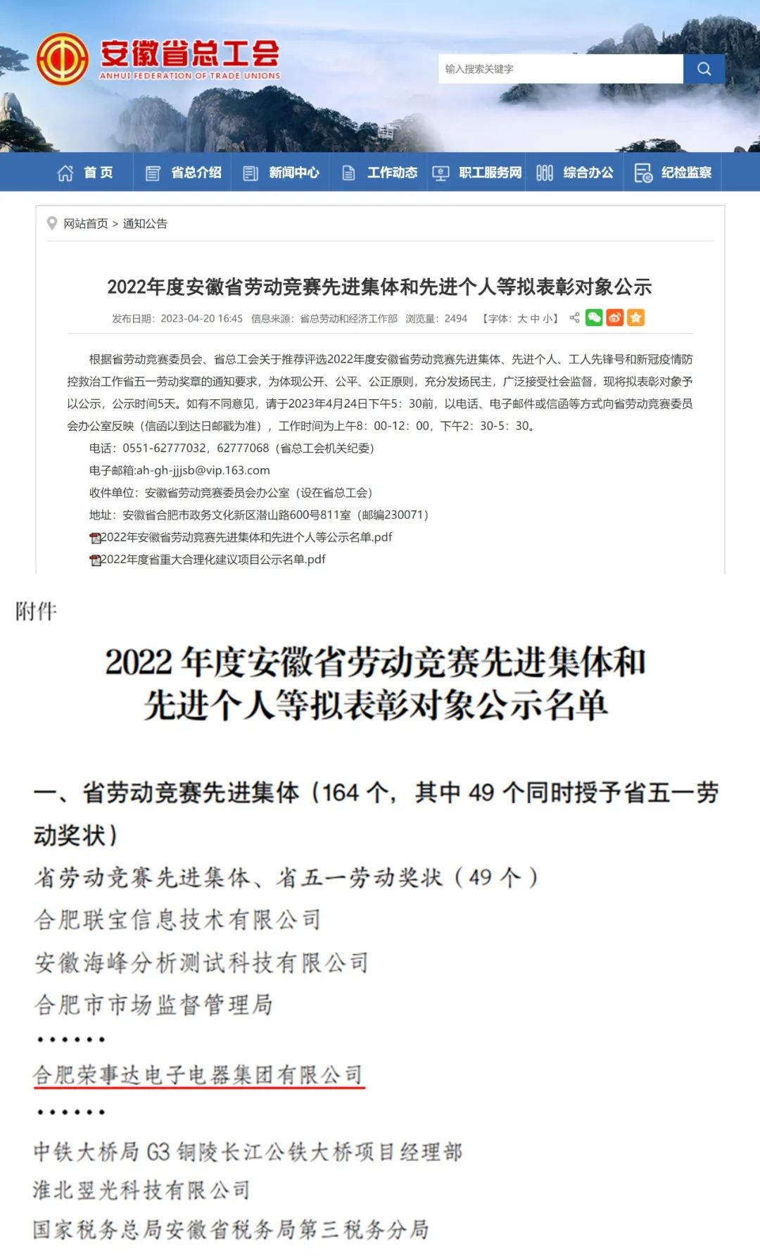 日前,安徽省勞動(dòng)競賽委員會(huì )、省總工會(huì )印發(fā)《關(guān)于表彰2022年度安徽省勞動(dòng)競賽先進(jìn)集體、先進(jìn)個(gè)人和安徽省五一勞動(dòng)獎、工人先鋒號的決定》,其中,榮事達集團被授予2022年度全省勞動(dòng)競賽先進(jìn)集體榮譽(yù)稱(chēng)號,并被授予“安徽省五一勞動(dòng)獎狀”。
