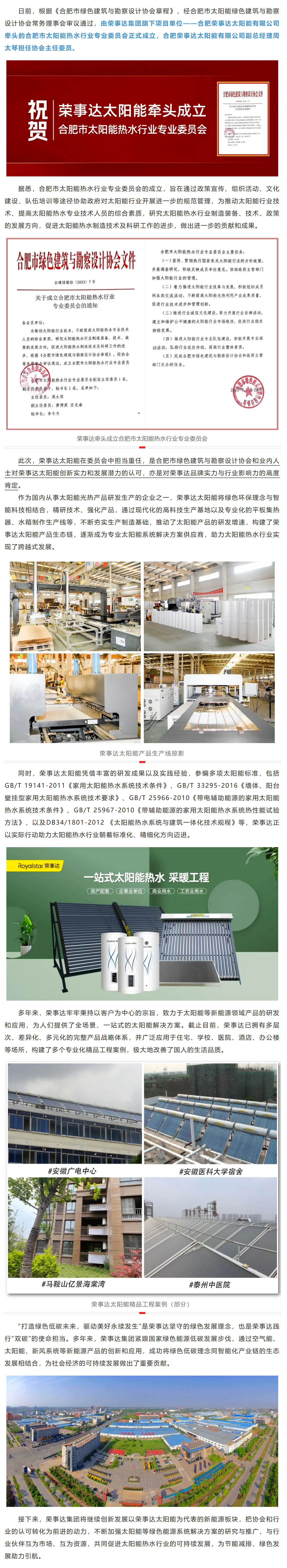 行業(yè)賦能!榮事達牽頭成立合肥市太陽(yáng)能熱水行業(yè)專(zhuān)業(yè)委員會(huì )