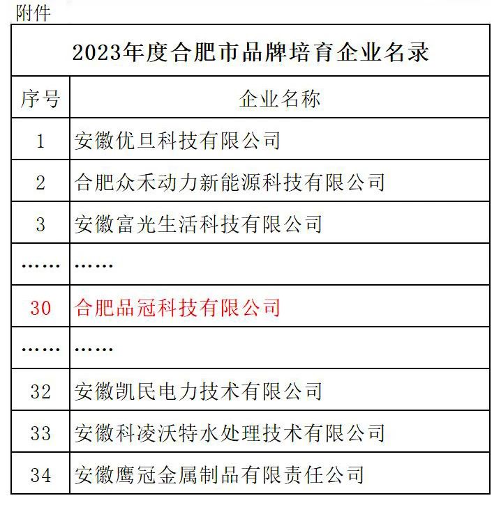 為加快合肥市企業(yè)品牌培育,提升品牌發(fā)展水平,日前,合肥市經(jīng)濟和信息化局發(fā)布了“關(guān)于公布2023年度合肥市品牌培育企業(yè)的通知”,其中,榮事達國家雙創(chuàng )示范基地項目單位合肥品冠科技有限公司榮耀上榜。