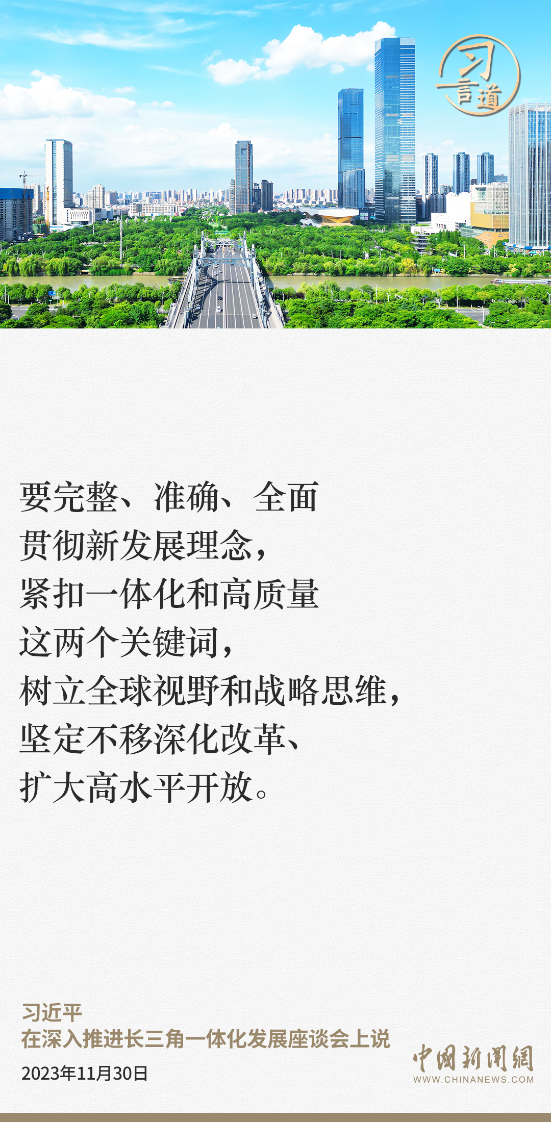 中共中央總書(shū)記、國家主席、中央軍委主席習近平11月30日上午在上海主持召開(kāi)深入推進(jìn)長(cháng)三角一體化發(fā)展座談會(huì )并發(fā)表重要講話(huà)。習近平指出——