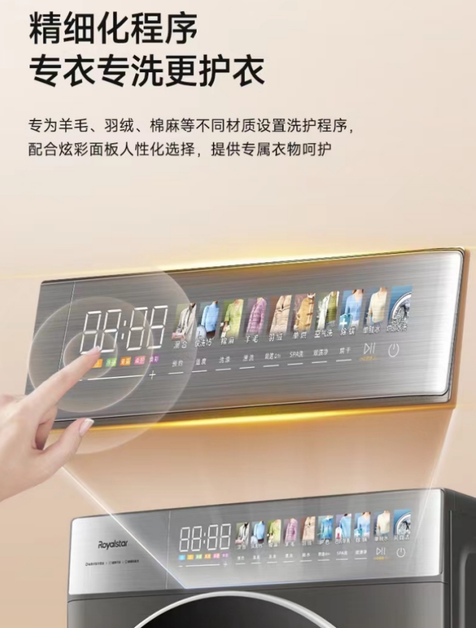 此外,榮事達大薄系列滾筒洗衣機(XQG120-18DQ)還配置了精細化洗衣程序,為羊毛、羽絨、棉麻等不同材質(zhì)設置洗護程序,專(zhuān)衣專(zhuān)洗更護衣,讓您的愛(ài)衣也能享受高端“SPA”。不僅如此,它擁有的頑漬超凈洗模式,能夠輕松應對油漬、汗漬等頑固污漬的挑戰。根據不同污漬的特性,智能調節洗滌水溫,快速激活并瓦解衣物上的油漬、酒漬、果漬等,讓您的衣物潔凈如新。
