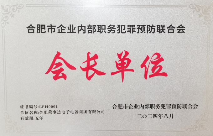 此次,榮事達集團當選合肥市企業(yè)內部職務(wù)犯罪預防聯(lián)合會(huì )會(huì )長(cháng)單位,是聯(lián)合會(huì )對榮事達集團長(cháng)期以來(lái)堅持誠信經(jīng)營(yíng)、依法治企理念的認可。一直以來(lái),榮事達集團積極參與承接聯(lián)合會(huì )工作,組織開(kāi)展企業(yè)內部廉潔文化活動(dòng),不斷提升企業(yè)內部職務(wù)犯罪防范意識和預防能力。