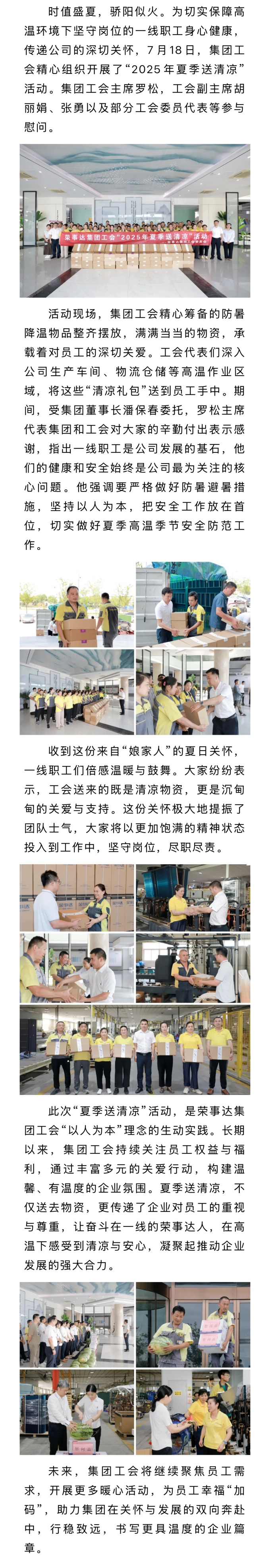 戰高溫・送清涼:榮事達工會(huì )把關(guān)愛(ài)送到一線(xiàn)