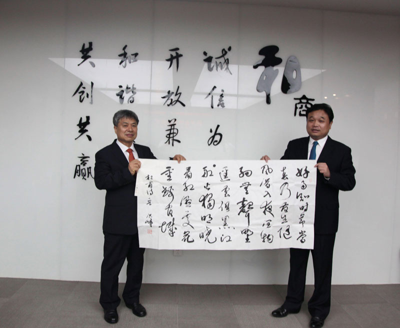 簽約儀式上,雙方就未來(lái)技術(shù)合作與研發(fā)方向進(jìn)行了廣泛而又深入的研討,達成一致意見(jiàn)并成功簽約。最后潘保春董事長(cháng)代表榮事達集團向韓方合作伙伴贈送了代表中國傳統文化的書(shū)法作品。