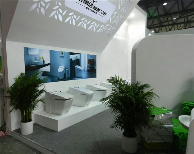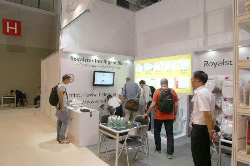 榮事達電子電器集團有限公司的展位位于B區12.1號館H25、26,展位總面積是18平方米,整體造型是馬桶蓋的異形設計,吊頂上藍光的設計凸顯出強烈的科技感,統一的黃色和灰色的色調彰顯著(zhù)榮事達的企業(yè)文化,展廳陳列著(zhù)榮事達強勢推出的新產(chǎn)品——不同型號的潔身器,品質(zhì)高端。讓大家對這個(gè)老牌子有了全新認識和感受。