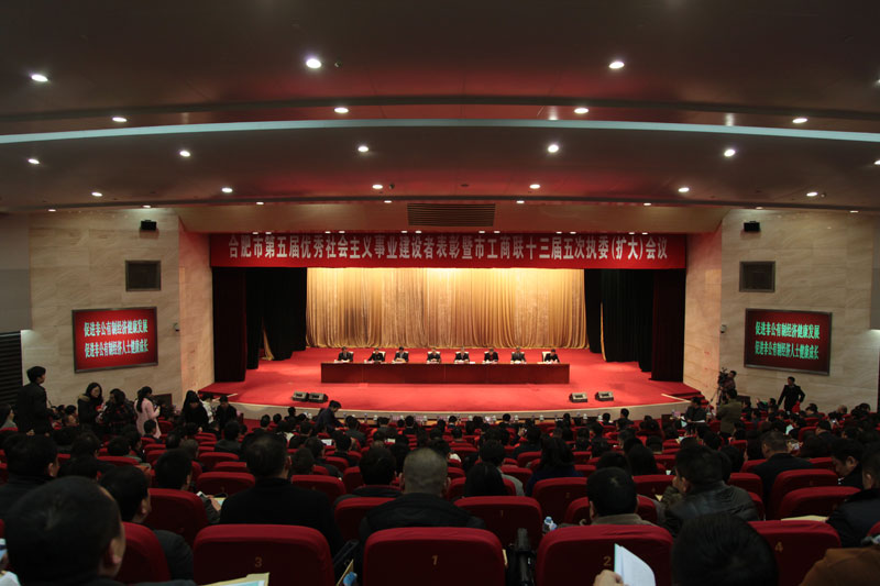 會(huì )前,省委常委、市委書(shū)記吳存榮親切接見(jiàn)了優(yōu)秀建設者代表,合影留念并講話(huà)。合肥市委常委、統戰部長(cháng)韋弋、合肥市經(jīng)信委主任李海鷹、合肥市工商聯(lián)黨組書(shū)記夏向東、合肥市工商聯(lián)主席陳先保等領(lǐng)導出席會(huì )議。市直有關(guān)部門(mén)負責人、市第五屆優(yōu)秀中國特色社會(huì )主義事業(yè)建設者、市非公企業(yè)和非公企業(yè)家代表約五百余人參加了此次會(huì )議。