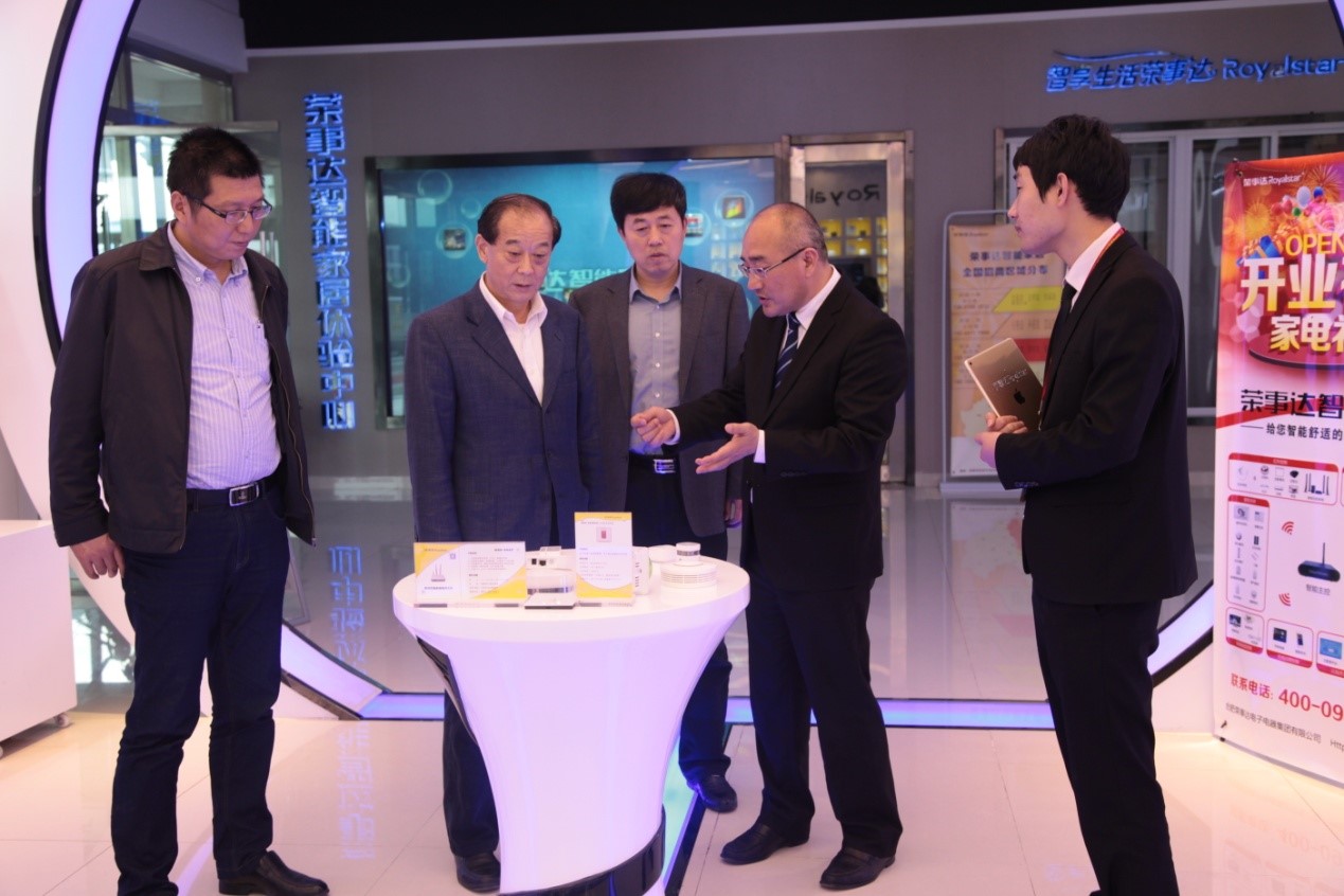 (圖1:馬總向調研團一行介紹榮事達智能家居系列產(chǎn)品)