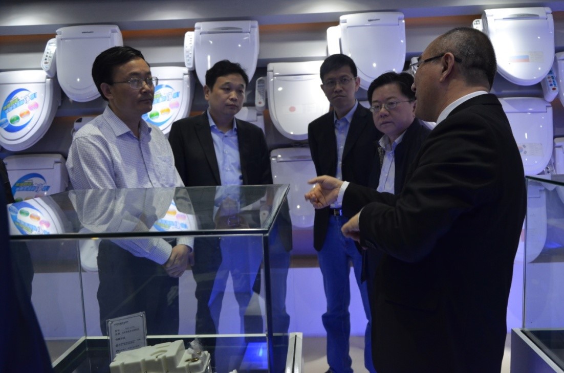 在座談過(guò)程中,潘保春董事長(cháng)向調研團做了智能潔身器項目專(zhuān)項報告。報告中對智能坐便器的基本情況、中日智能坐便器產(chǎn)品比較、中國品牌在各項技術(shù)參數等方面都做了精確數據說(shuō)明,數據顯示中國品牌在各項技術(shù)參數方面完全趕超國外品牌,而且在產(chǎn)品水泵增壓、水質(zhì)凈化方面,中國品牌的產(chǎn)品更適合中國使用國情。