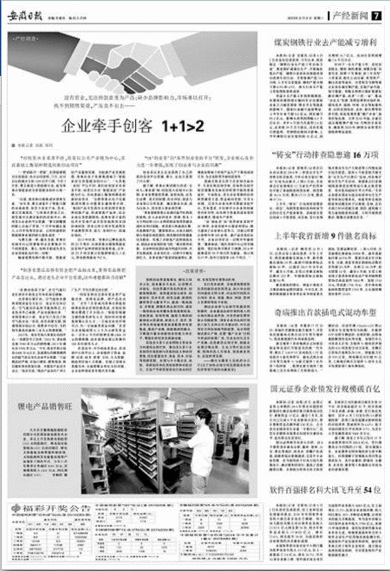 今日,《安徽日報》經(jīng)濟頭條以企業(yè)牽手創(chuàng )客 1+1>2為題,專(zhuān)題報道了榮事達創(chuàng )新“雙創(chuàng )”工作的成效,報道中指出:不少創(chuàng )業(yè)者表示,在榮事達雙創(chuàng )中心的平臺上,企業(yè)提供了資金、品牌、信息、技術(shù)、管理、文化、人力資源、制造和市場(chǎng)9大資源,實(shí)現了雙創(chuàng )全資源互補、全流程整合和全方位對接,讓企業(yè)和創(chuàng )業(yè)者實(shí)現共享共贏(yíng)。