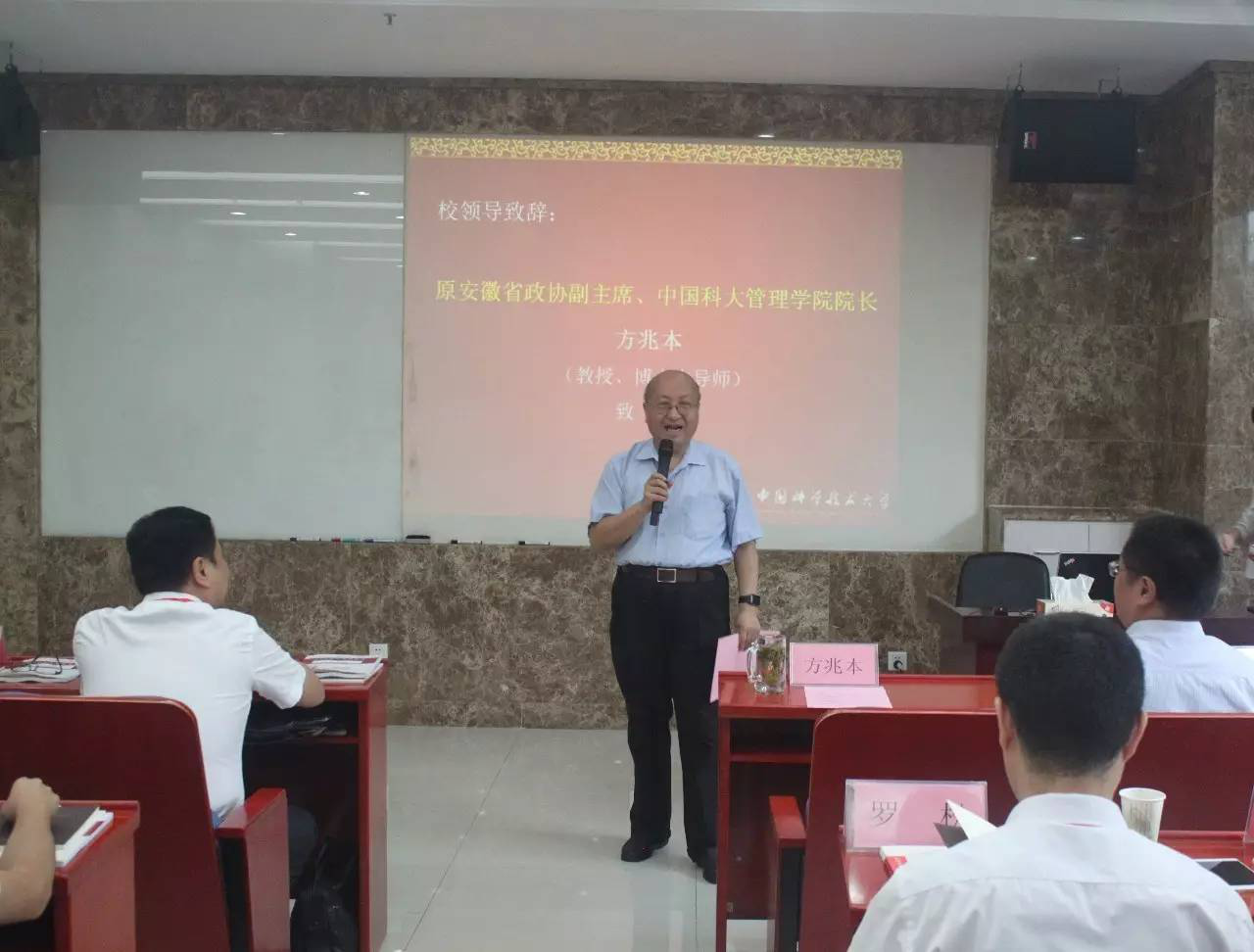 原安徽省政協(xié)副主席、中國科學(xué)技術(shù)大學(xué)管理學(xué)院院長(cháng)、教授、博導方兆本致辭