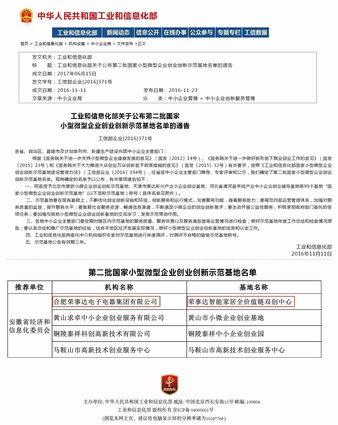 ↑↑↑榮事達被工信部評為“國家小型微型企業(yè)創(chuàng )業(yè)創(chuàng )新示范基地”
