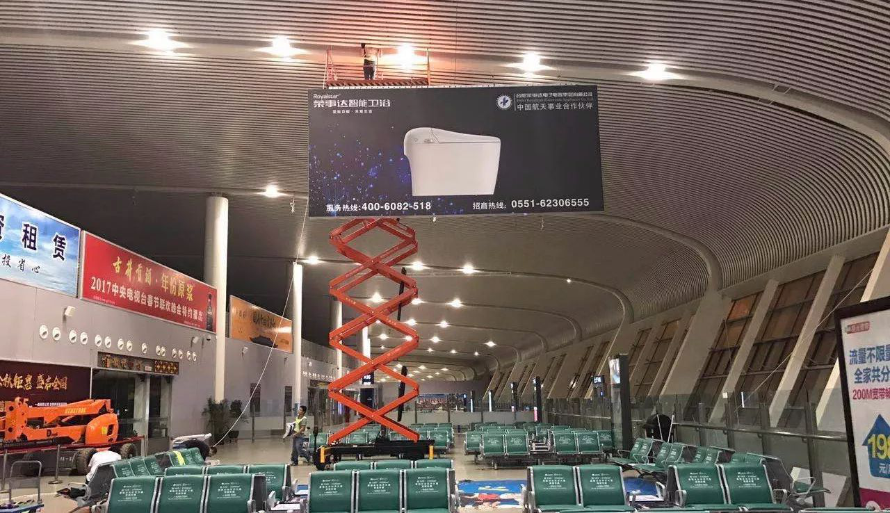 近日,榮事達智能衛浴廣告牌登陸合肥新橋國際機場(chǎng)候機大廳。
