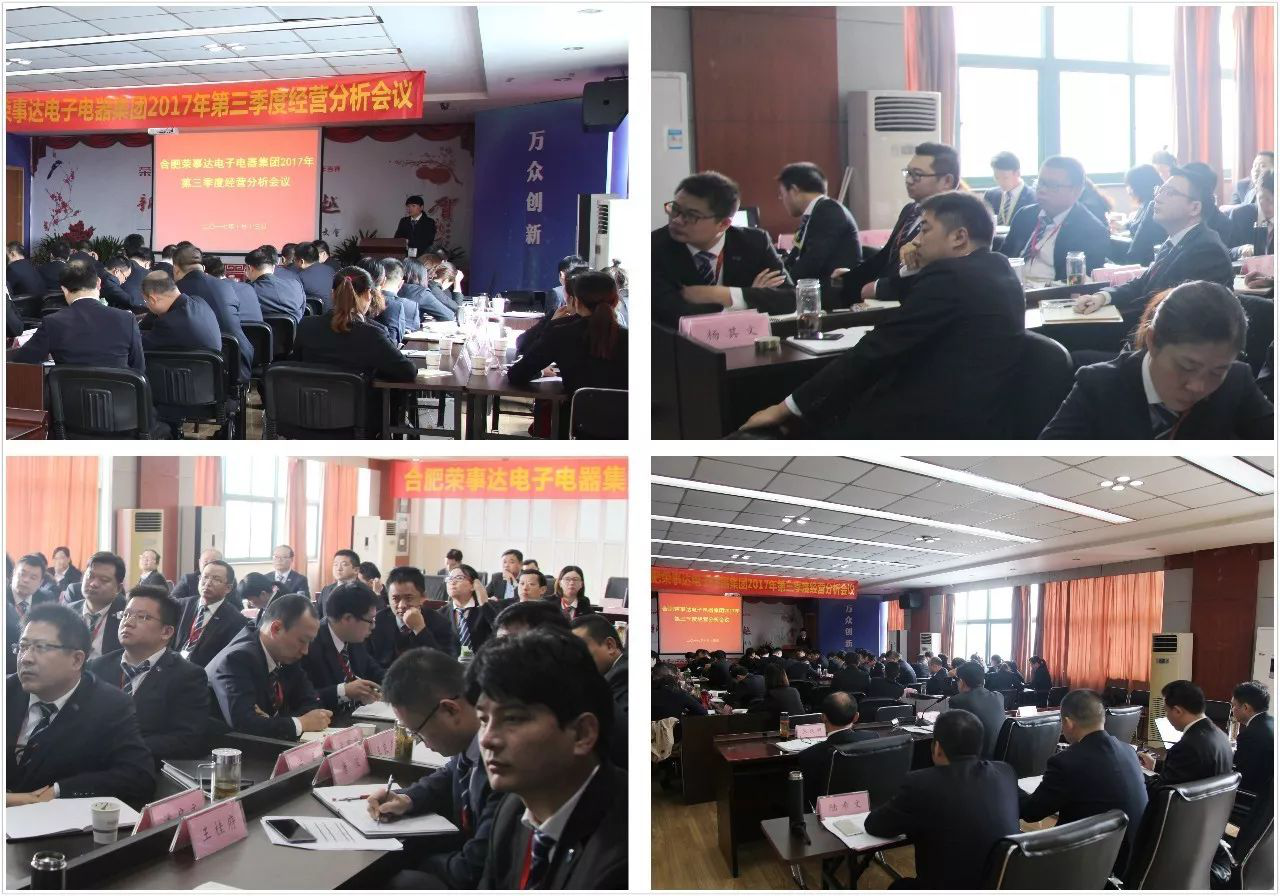10月11日至13日,合肥榮事達電子電器集團2017年第三季度經(jīng)營(yíng)分析會(huì )議隆重召開(kāi)。會(huì )議認真總結了第三季度集團在生產(chǎn)經(jīng)營(yíng)、品牌建設、業(yè)務(wù)拓展等方面工作,并對第四季度工作做出了整體安排部署。