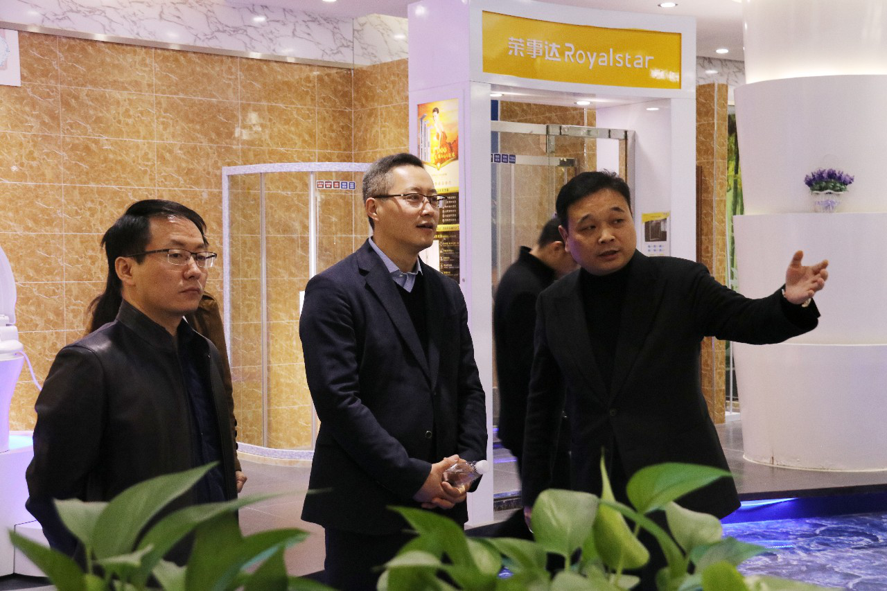 潘保春董事長(cháng)為沈竹林副司長(cháng)介紹榮事達智能淋浴屏