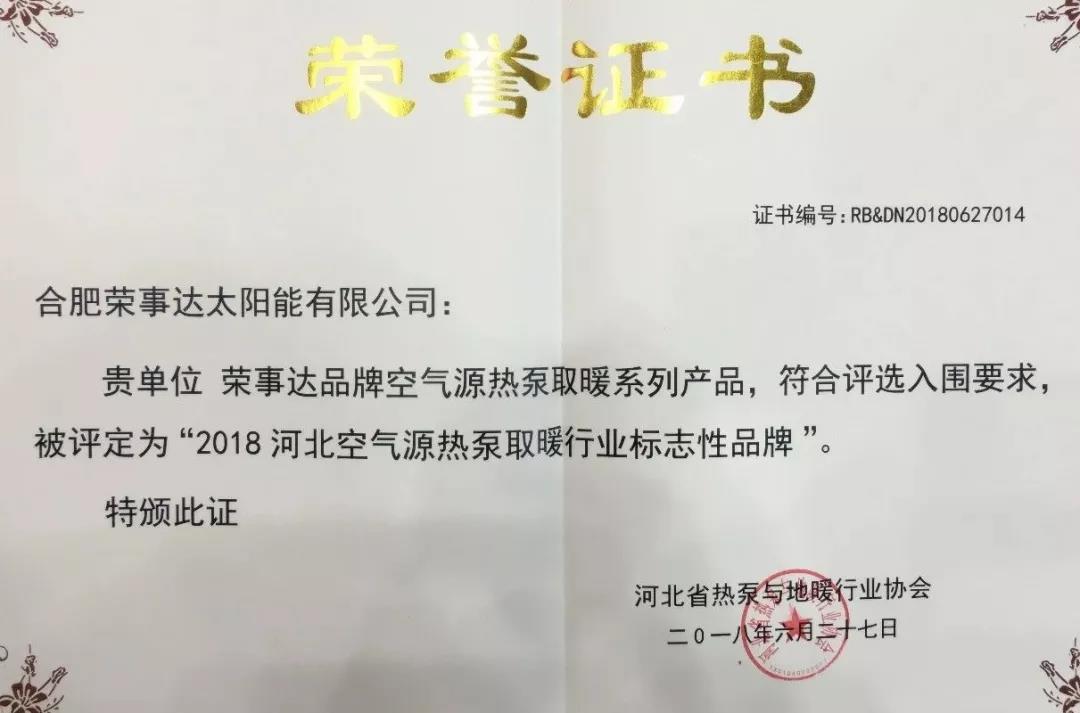 上周,在由河北省熱泵與地暖行業(yè)協(xié)會(huì )主辦的2018全國空氣源熱泵取暖技術(shù)與應用資源對接會(huì )中,榮事達更是成功突圍,斬獲“2018河北空氣源熱泵取暖行業(yè)標志性品牌”稱(chēng)號!這是繼獲得“北京清潔能源突出貢獻單位”、“山東清潔供暖突出貢獻單位”榮譽(yù)后,大眾對榮事達空氣能創(chuàng )客項目的又一肯定。