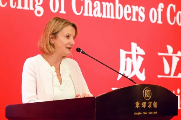 中國法國工商會(huì )總經(jīng)理韋嘉玲代表海外友好商會(huì )致辭