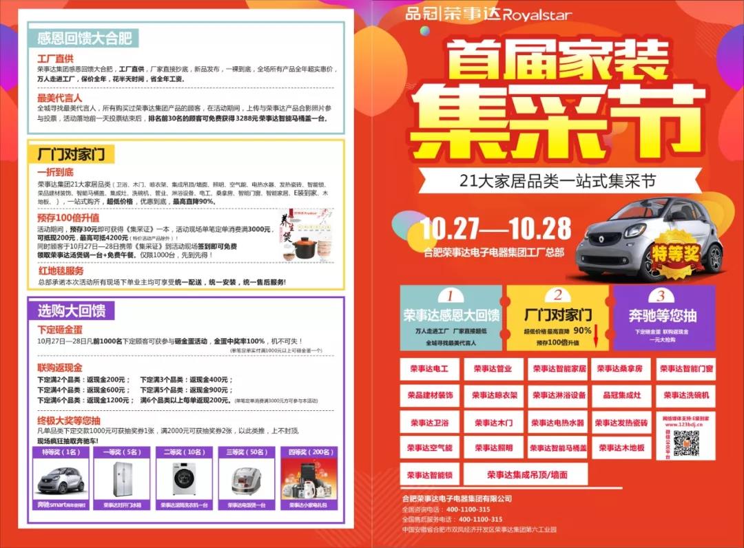 據悉,此次“首屆家裝集采節”由榮事達電子電器集團總部精心籌備,各項目單位聯(lián)動(dòng)發(fā)力,旨在為長(cháng)期支持民族品牌的廣大消費者打造一站式家居購物價(jià)格新盆地。作為2018年年度力度最大、亮點(diǎn)最多、元素最豐富的大型聯(lián)動(dòng)活動(dòng),榮事達的家人們正在齊心協(xié)力、一同奮戰共創(chuàng )佳績(jì)。