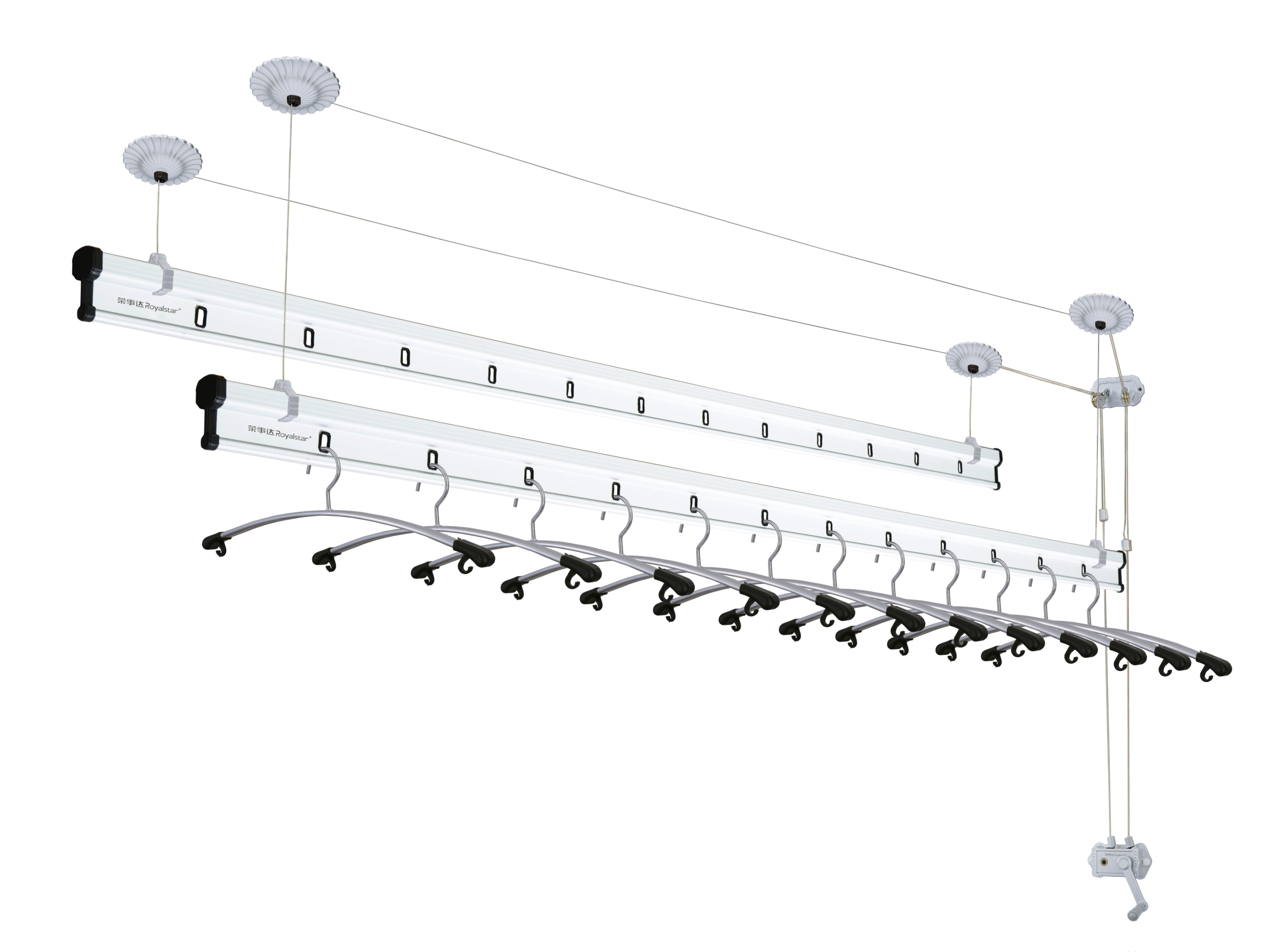 產(chǎn)品名稱(chēng):手搖晾衣架 產(chǎn)品型號:RSD-7006S 頂座:吉祥頂 轉角器:吉祥花邊 鋼絲繩:304/1.5 衣?lián)危篊型純鋁衣?lián)?br /> 晾桿參數:2桿、24個(gè)防風(fēng)掛孔 晾桿:電白太空鋁方圓桿 手搖器:吉祥花邊